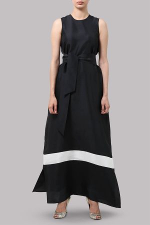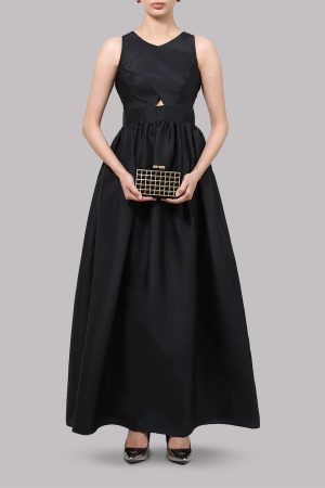 Black Raw Silk Maxi Dress