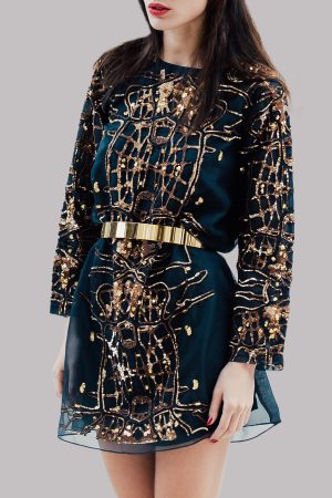 Black Iris Organza Embellished Dress